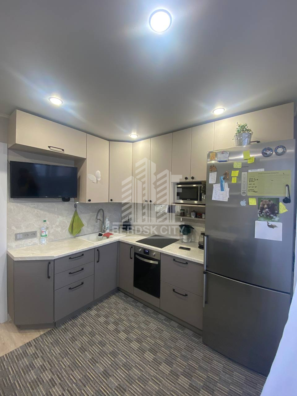 Остаётся вся мебель и бытовая техника: варочная панель, духовой шкаф.