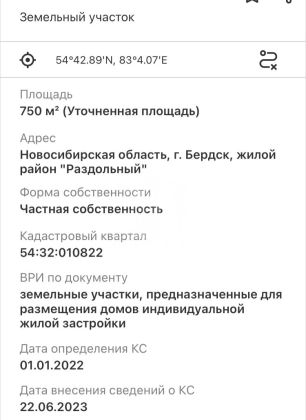 | Кадастровый номер участка | 54:32:010822:2013 |
